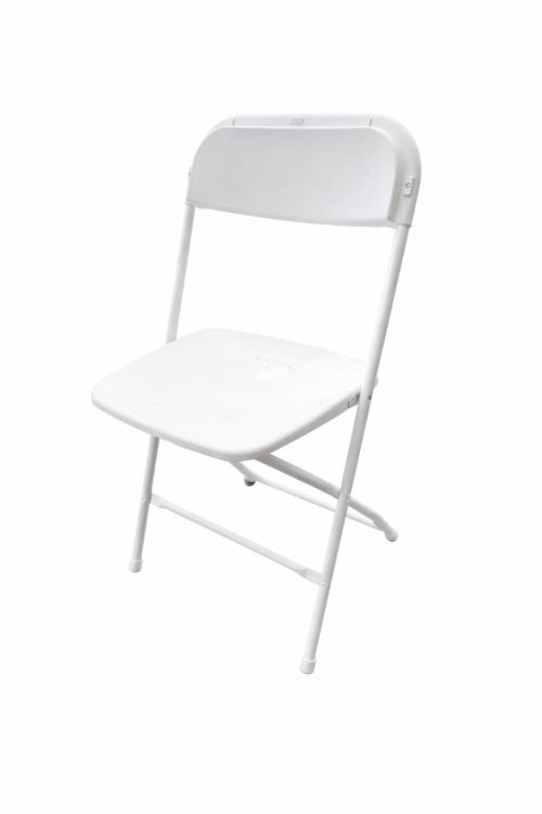 White folding chair rentals available for parties, weddings, and events across Massachusetts. Each set includes (10) durable white chairs with metal legs and comfortable plastic seats and backs. Perfect for pairing with table and tent rentals to ensure your guests are seated comfortably.